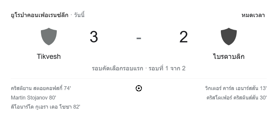 ผลบอลยูฟ่ายูโรปาคอนเฟอเรนซ์ลีก 2024 ระหว่าง ทีม FK Tikves Kavadarci vs ทีมเบรย์ดาบลิค วันนี้ 12 กรกฎาคม 2567 ดูบอลย้อนหลัง คลิปไฮไลท์ ดูบอลฟ่าคอนเฟอเรนซ์ลีก 2024