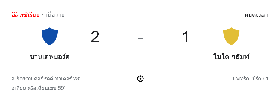 ซานเดฟยอร์ด 2-1 โบโด กลิมท์