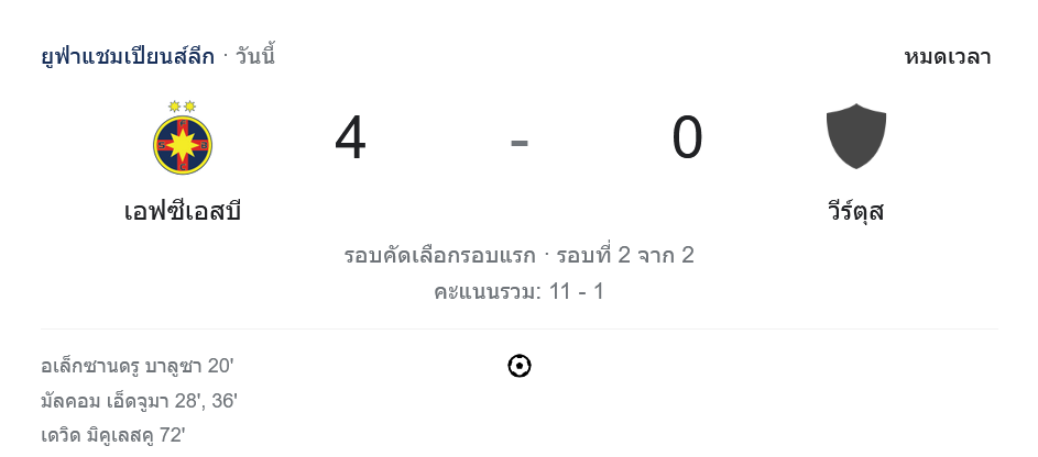 สเตอัว บูคาเรสต์ 4-0 SS Virtus อัปเดตผลบอลยูฟ่าแชมเปียนส์ลีก 2024