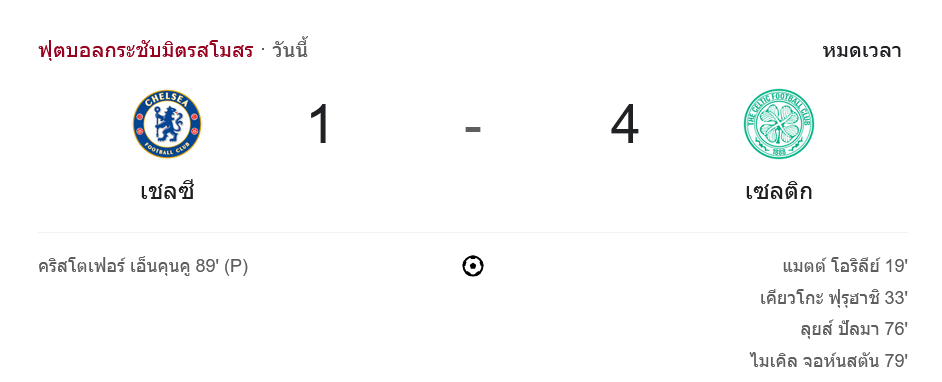เชลซี 1-4 เซลติก การแข่งขันกระชับมิตรที่แสนดุเดือด