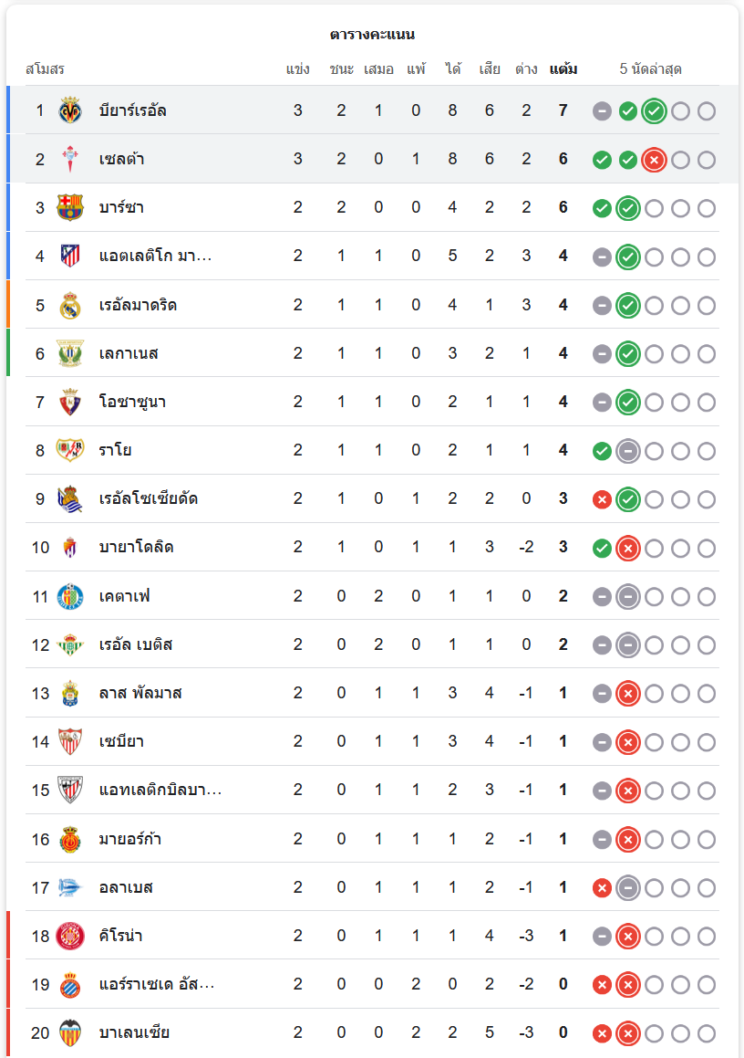ตารางคะแนนลาลิกาล่าสุด