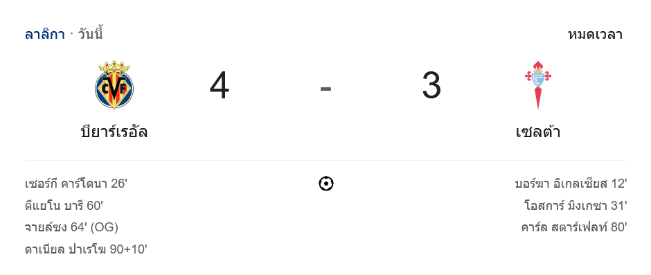 ไฮไลท์ฟุตบอลลาลิกา 2024 บียาร์เรอัล 4-3 เซลต้า บีโก้ วันนี้ 27/8/67 – บ้านกีฬา (bankeela1.com)