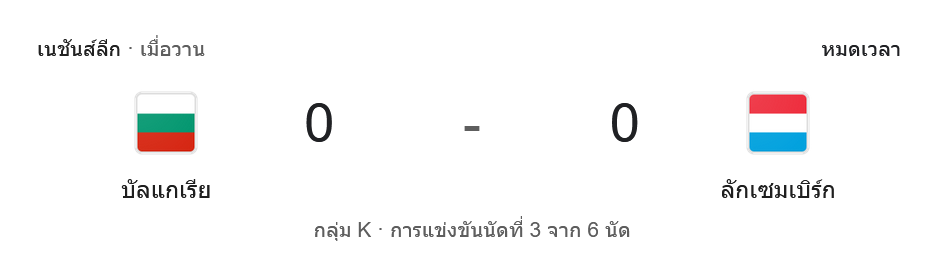 บัลแกเรียเปิดบ้านเจ๊าลักเซมเบิร์ก 0-0 ในศึกยูฟ่าเนชันส์ลีก 2024