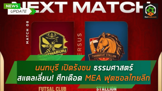 เตรียมตัวให้พร้อม! ค่ำคืนวันเสาร์นี้จะระอุไปด้วยศึกแห่งศักดิ์ศรีของสองทีมฟอร์มแรงแห่ง MEA ฟุตซอลไทยลีก 2025 เมื่อ นนทบุรี ฟุตซอลคลับ เตรียมเปิดรัง สนามลำโพ สเตเดี้ยม เพื่อต้อนรับการมาเยือนของจ่าฝูงฟอร์มแรงอย่าง ธรรมศาสตร์ สแตลเลี่ยน ในวันเสาร์ที่ 21 มิถุนายน 2568 เวลา 20.30 น. แฟนฟุตซอลห้ามพลาด! ถ่ายทอดสดผ่าน True Sports 2 รับประกันความมันระดับพรีเมียม