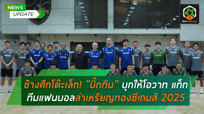 บรรยากาศในแคมป์ทีม ฟุตซอล ชาย ทีมชาติไทย ช่วงโค้งสุดท้ายก่อนซีเกมส์ครั้งที่ 33 เดือดตั้งแต่ยังไม่ลงสนาม เมื่อ “บิ๊กทิน” สุทิน บัวตูม ผู้จัดการทีมชาติไทย เดินทางมาชมการฝึกซ้อมของทัพ ช้างศึกโต๊ะเล็ก อย่างใกล้ชิด ทั้งเช็กบรรยากาศในทีม ดูความพร้อมของนักเตะ และพูดคุยกับสตาฟฟ์โค้ชแบบไม่ห่างตัว เพื่อย้ำภาพชัด ๆ ว่าภารกิจครั้งนี้คือ “ต้องไปให้สุด เพื่อป้องกันแชมป์เหรียญทอง”