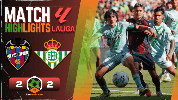 ศึก ลาลีกา สเปน เกมสุดมันส์ที่สนาม Ciutat de València บ้านของเลบานเต้ เต็มไปด้วยดราม่าตั้งแต่นาทีแรก ผลบอลสด รายงานว่าเจ้าถิ่นยิงนำเร็วตั้งแต่นาทีที่ 2 จาก อีวาน โรเมโร และตามด้วย เอตต้า เอยอง นาทีที่ 10 ทว่าก่อนหมดครึ่งแรก เรอัล เบติส ไล่มาเป็น 2-1 จาก คูโช่ เอร์นานเดซ และพวกเขาก็ไม่ยอมแพ้ง่าย ๆ ตามตีเสมอได้สำเร็จจาก ปาโบล ฟอร์นาลส์ ในนาที 81 จบเกมเสมอสุดดุเดือด 2-2 แบ่งกันไปทีมละแต้ม