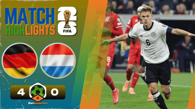 ศึกฟุตบอลโลก 2026 รอบคัดเลือก โซนยุโรป กลุ่ม A “อินทรีเหล็ก” เยอรมนี โชว์ฟอร์มเหนือชั้น ไล่ถล่ม ลักเซมเบิร์ก ขาดลอย 4-0 ที่สนามเพรซีโร อารีนา เกมนี้เจ้าถิ่นครองเกมแบบเบ็ดเสร็จตั้งแต่ต้นยันจบ “โยชัว คิมมิช” ระเบิดฟอร์มสุดร้อนแรง ยิงสองประตู นาทีที่ 21 (จุดโทษ) และ 50 ส่วนอีกสองลูกเป็นของ “เซิร์จ นาบรี้” นาทีที่ 48 และ “ดาวิด เราม์” นาทีที่ 12 ผลบอลสด รายงานว่า ลักเซมเบิร์กต้องเล่น 10 คนตั้งแต่นาทีที่ 20 หลัง “เดิร์ค คาร์ลสัน” โดนใบแดงจากจังหวะแฮนด์บอลในกรอบเขตโทษ ส่งผลให้เกมนี้กลายเป็นฝ่ายเดียวโดยสมบูรณ์
