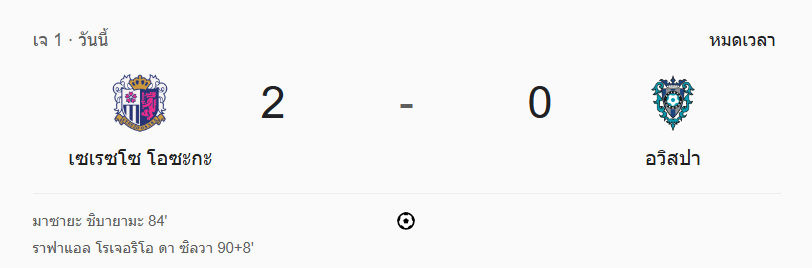เซเรโซ โอซาก้า ปิดเกมท้ายครึ่ง! ยิงสองตุงดับซ่าอวิสปา 2-0 ศึกเจลีก 2025