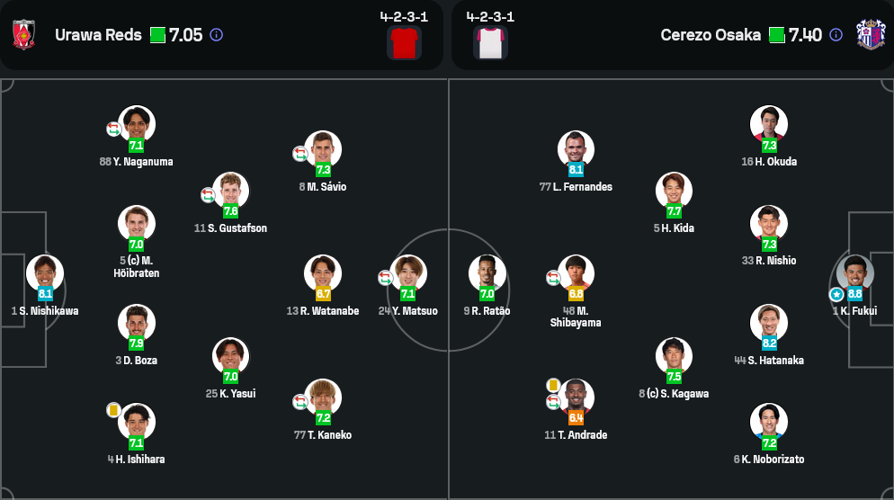 ตำแหน่งยอดนักเตะของเกมนี้ตกเป็นของ โคกิ ฟุคุอิ นายทวารของเซเรโซ โอซาก้า ที่โชว์เซฟมหัศจรรย์หลายครั้ง โดยเฉพาะการล้มตัวปัดลูกยิงจ่อ ๆ จากอูราวะถึงสองจังหวะ ฟอร์มเหนียวหนึบเกินต้าน ส่งผลให้เขาได้รับคะแนนสูงถึง 8.8 และเป็นหัวใจสำคัญที่ช่วยทีมเก็บ 1 แต้มกลับบ้านได้สำเร็จ