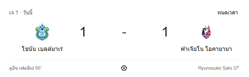 เกมนี้โชนัน เบลมาเร่ แสดงให้เห็นถึงหัวจิตหัวใจนักสู้ ไล่ตีเสมอและเดินหน้าลุยจนเสียงสุดท้าย ขณะที่โอคายามาก็โชว์เกมรับเหนียว มีวินัยทั้งเกม “ผลบอลสด” คู่นี้แฟนบอลได้ลุ้นกันตลอด ไม่มีใครยอมใครแม้แต่นาทีเดียว บ้านกีฬาขอย้ำ นี่คือฟุตบอลเจลีกที่เต็มไปด้วยอารมณ์และความเข้มข้นของจริง!
