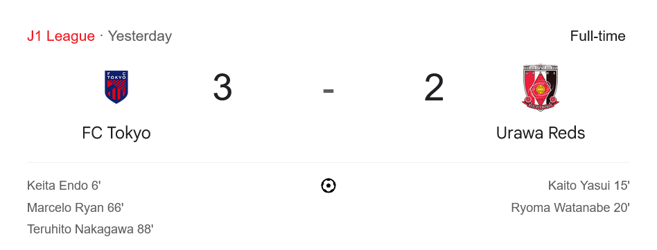 จาก : ผลบอลสด เจลีก ดิวิชัน 1 ระหว่าง เอฟซี โตเกียว 3-2 อูราวะ เรด ไดมอนส์ วันนี้ 19/7/68 – บ้านกีฬา