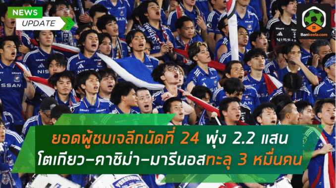 ศึกฟุตบอล เจลีก 2025 เดือดสุดขีดไม่แพ้เกมในสนาม เมื่อสถิติผู้ชมในนัดที่ 24 ระหว่างวันที่ 19–21 กรกฎาคมที่ผ่านมา สร้างปรากฏการณ์คนแห่ชมแน่นทุกมุมสนาม ยอดรวมทะลุถึง 221,871 คน เฉลี่ยกว่า 24,652 คนต่อเกม โดยเฉพาะบิ๊กแมตช์ในเมืองหลวงและหัวเมืองใหญ่ที่แฟนบอลเทใจเข้าชมเกิน 30,000 คนถึง 4 สนาม นำโดยคู่ระหว่าง เอฟซี โตเกียว ปะทะ อุราวะ เรดส์ ซึ่งถือเป็นศึกแห่งศักดิ์ศรีที่จุดไฟความมันให้เต็มโตเกียว สเตเดียม