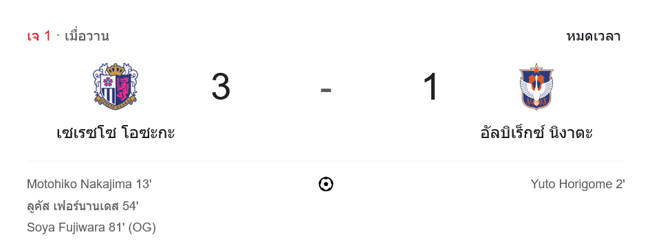 บ้านกีฬาเกาะติดศึกเจลีก ดิวิชัน 1 ที่เมืองโอซาก้า เกมนี้เจ้าถิ่น เซเรโซ โอซาก้า แสดงหัวจิตหัวใจนักสู้ โดนยิงตั้งแต่ต้นเกมแต่พลิกกลับมาถล่ม อัลบิเร็กซ์ นิงาตะ 3-1 ด้วยฟอร์มเดือดสุดมัน ใครเปิดเช็ค ผลบอลสด ทันเวลาคือได้ลุ้นตั้งแต่นาทีแรกจริงๆ