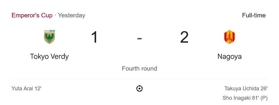 รายการนี้เป็นบอลถ้วย จึงไม่กระทบอันดับลีกโดยตรง แต่มาตรฐานเกมใหญ่และความนิ่งของนาโกย่าช่วยยกระดับความมั่นใจก่อนคัมแบ็กลีก ด้านเวอร์ดี้แม้รูปเกมไม่ได้เป็นรอง แต่ต้องแก้ลำด้านวินัยเกมรับเมื่อเจอจังหวะสวนเร็ว เพื่อรักษาฟอร์มในตารางเจลีกให้แน่นอนขึ้น