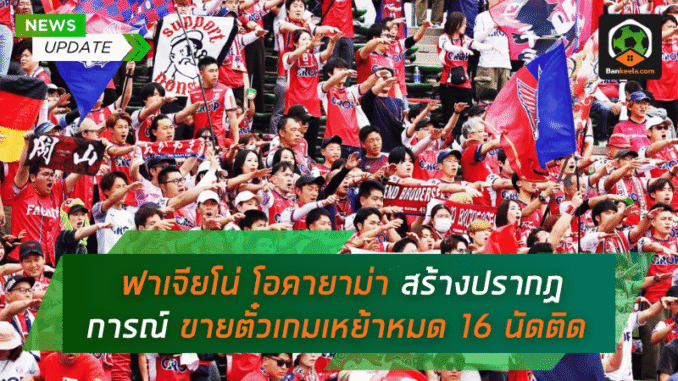 ฟาเจียโน่ โอคายาม่า ทีมน้องใหม่แห่งศึก เจลีก 1 ญี่ปุ่น กำลังกลายเป็นทีมที่แฟนบอลพูดถึงมากที่สุดในเวลานี้ ไม่ใช่เพียงเพราะผลงานในสนามที่น่าประทับใจ แต่ยังเพราะบรรยากาศอันดุเดือดบนอัฒจันทร์ที่เต็มความจุทุกนัด ล่าสุดสโมสรได้ประกาศอย่างเป็นทางการว่า ตั๋วเกมเหย้านัดเปิดบ้านพบ โชนัน เบลมาเร่ วันที่ 23 สิงหาคม 2568 ขายหมดเกลี้ยงแล้ว ถือเป็นการสร้างสถิติ Sold Out ต่อเนื่องเป็นนัดที่ 16 นับตั้งแต่เปิดฤดูกาล
