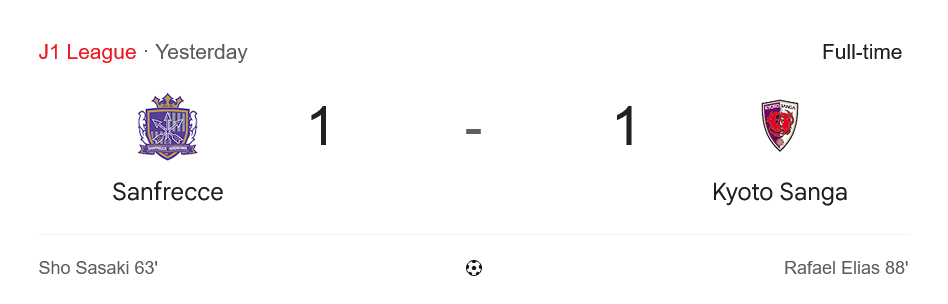 จาก : ผลบอลสด เจลีก ดิวิชัน 1 ระหว่าง ซานเฟรซเซ ฮิโรชิม่า 1-1 เกียวโต แซงก้า วันนี้ 12/9/68 – บ้านกีฬา