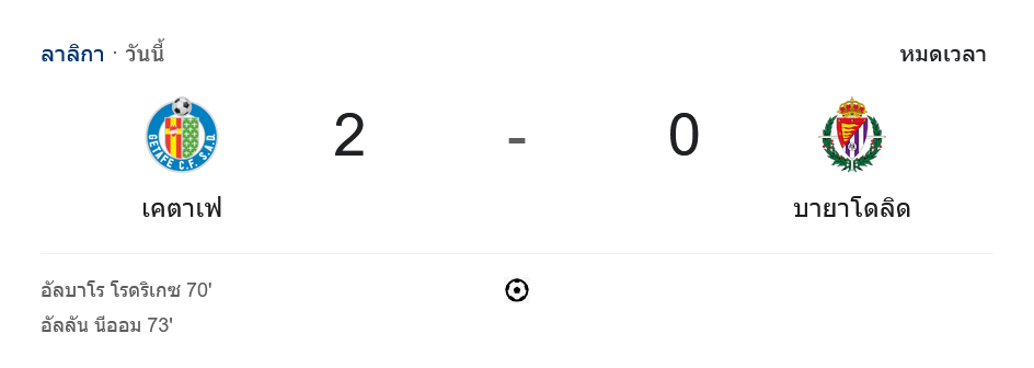 จาก : ผลบอลสด ลาลิกา 2024 ระหว่าง เกตาเฟ่ 2-0 เรอัล บายาโดลิด วันนี้ 23/11/67 – บ้านกีฬา
