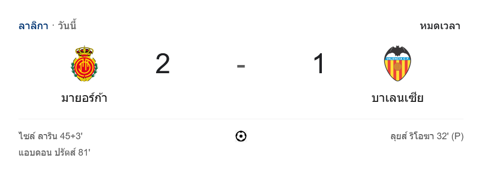 จาก : ผลบอลสด ลาลิกา 2024 ระหว่าง มายอร์ก้า 2-1 บาเลนเซีย วันนี้ 30/11/67 – บ้านกีฬา