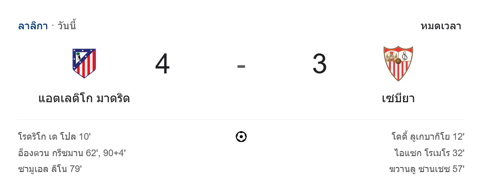 จาก : ผลบอลสด ลาลิกา 2024 ระหว่าง แอตเลติโก้ มาดริด 4-3 เซบีย่า วันนี้ 09/12/67 – บ้านกีฬา