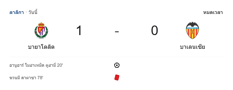 จาก : ผลบอลสด ลาลิกา 2024 ระหว่าง เรอัล บายาโดลิด 1-0 บาเลนเซีย วันนี้ 14/12/67 – บ้านกีฬา