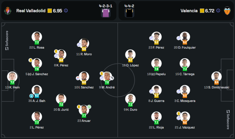 อับดุลาย จูมา บาห์ จาก เรอัล บายาโดลิด ได้รับคะแนนสูงสุดในเกมนี้ที่ 8.2 จากผลงานเกมรับและความแข็งแกร่งในจังหวะป้องกัน