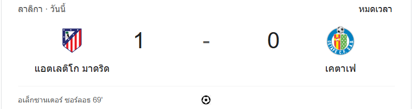 จบเกม: แอตเลติโก มาดริด เฉือนเอาชนะ เกตาเฟ่ ไปได้ 1-0 คว้าสามแต้มสำคัญ พร้อมสร้างความสุขให้แฟนบอลเจ้าถิ่น