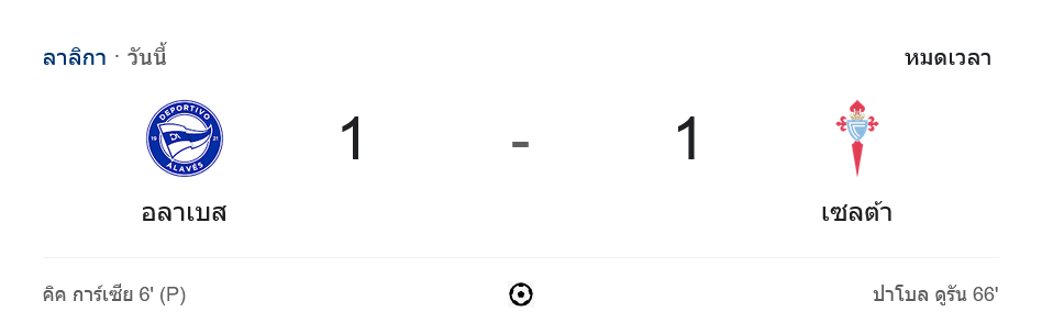 จาก : บ้านผลบอล สรุปหลังเกม อลาเบส เปิดรังเจ๊า เซลต้า บีโก้ 1-1 ศึก ลาลิกา 2024 แบ่งแต้มสุดมัน! – บ้านกีฬา