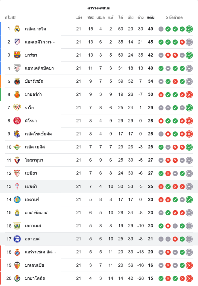 หลังจบเกมนี้ เซลต้า บีโก้ อยู่ที่ 13 มี 25 แต้ม จาก 21 นัด ส่วน อลาเบส ยังอยู่ในโซนอันตรายอันดับ 17 มี 21 แต้ม ต้องเร่งเครื่องเพื่อหนีโซนตกชั้นให้ได้ในนัดถัดไป