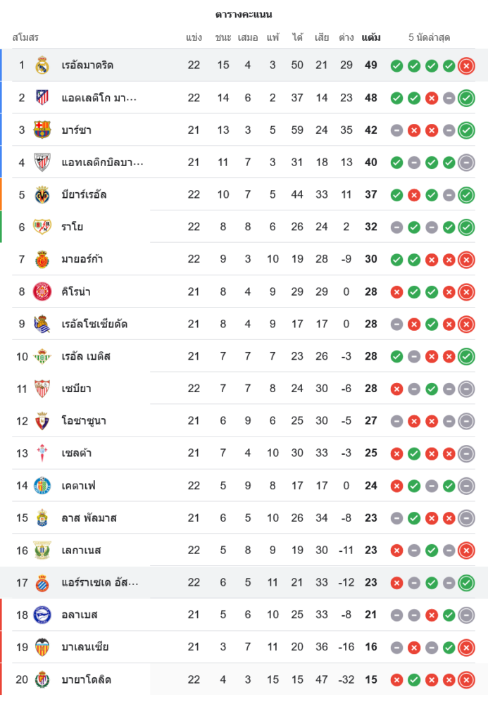 จาก : ผลบอลสด ลาลิกา 2024 ระหว่าง เอสปันญ่อล 1-0 เรอัล มาดริด วันนี้ 2/2/68 – บ้านกีฬา