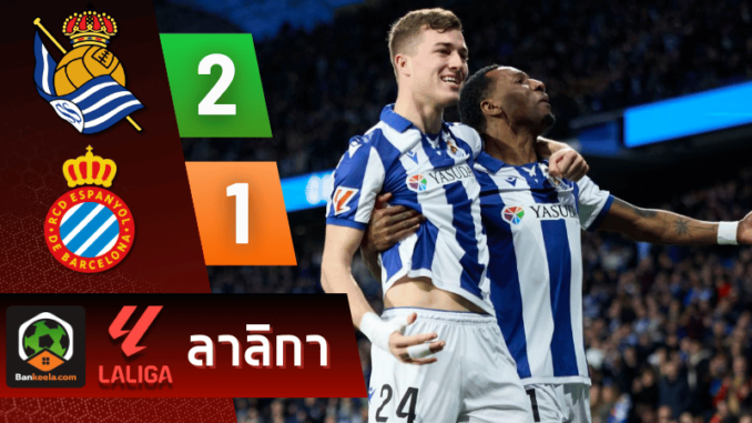 การแข่งขันฟุตบอล ลาลิกา 2024 คู่เดือดระหว่าง เรอัล โซเซียดัด และ เอสปันญ่อล ปิดฉากลงอย่างดุเดือด โดยเกมนี้เจ้าถิ่น เรอัล โซเซียดัด เปิดรังเฉือนเอาชนะ เอสปันญ่อล 2-1 คว้าสามแต้มสำคัญ พร้อมขยับอันดับในตารางคะแนน บ้านผลบอล ไปอยู่ในโซนลุ้นโควตายุโรป ขณะที่ทีมเยือนต้องกลับไปแก้เกมหลังจากพ่ายอีกนัดในซีซั่นนี้