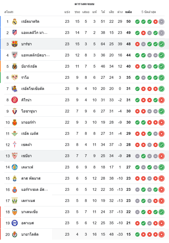 ตารางบอล บาร์เซโลน่า เตรียมเจอศึกหนักในเกมถัดไป ส่วน เซบีย่า ต้องเร่งฟื้นฟอร์มเพื่อหนีโซนกลางตาราง