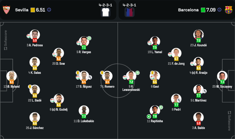 - นักเตะโดดเด่น: ราฟินญ่า (7.8), อินญิโก้ มาร์ติเนซ (7.7), เฟรงกี้ เดอ ยอง (8.7)