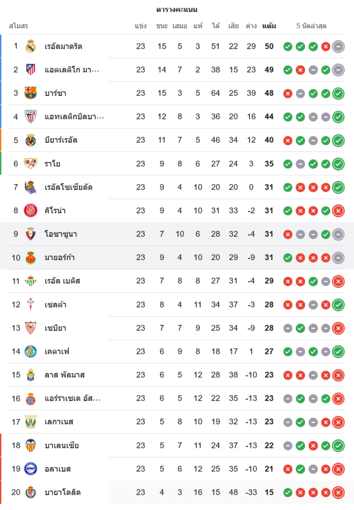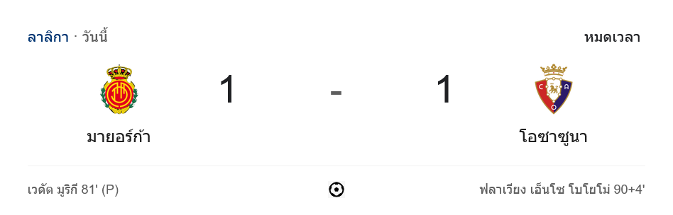 จาก : ผลบอลสด ลาลิกา 2024 ระหว่าง มายอร์ก้า 1-1 โอซาซูน่า วันนี้ 11/2/68 – บ้านกีฬา