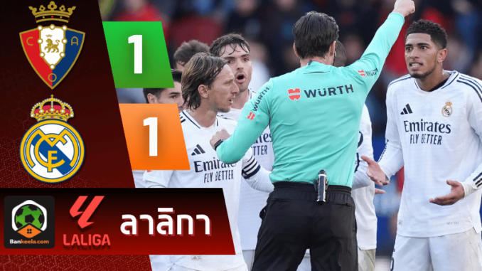 จาก : ผลบอลสด ลาลิกา 2024 ระหว่าง โอซาซูน่า 1-1 เรอัล มาดริด วันนี้ 15/2/68 – บ้านกีฬา