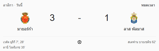 - นาทีที่ 96 กรรมการเป่านกหวีดจบเกม มายอร์ก้าเปิดบ้านเอาชนะลาส ปัลมาส 3-1!