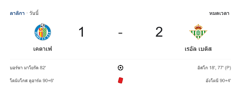 จาก : ผลบอลสด ลาลิกา 2024 ระหว่าง เกตาเฟ่ 1-2 เรอัล เบติส วันนี้ 24/2/68 – บ้านกีฬา