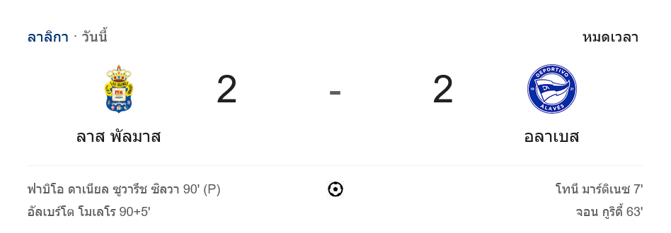 จาก : ผลบอลสด ลาลิกา 2024 ระหว่าง ลาส พัลมาส 2-2 อลาเบส วันนี้ 15/3/68 – บ้านกีฬา