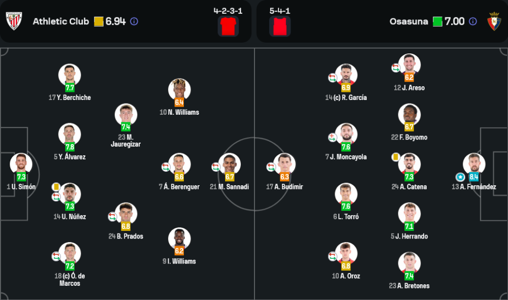 🔄 89′ ราอูล การ์เซีย เดอ ฮาโร่ (บูดิเมียร์), โฆเซ่ มานูเอล อาร์นาอิซ (โอรอซ)