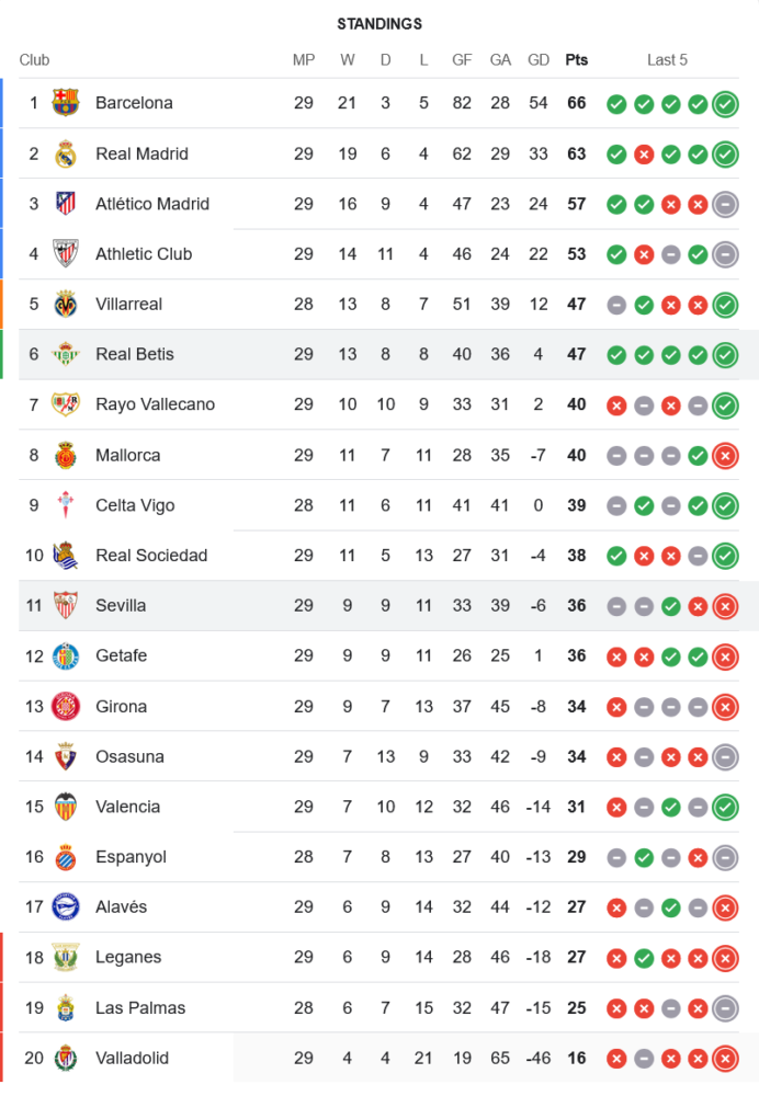 ผลการแข่งขันทำให้ เบติส รั้งอันดับ 6 ด้วย 47 คะแนน มีลุ้นพื้นที่ยุโรปเต็มตัว ขณะที่ เซบีย่า อยู่อันดับ 11 มี 36 แต้ม ยังต้องดิ้นรนต่อไป