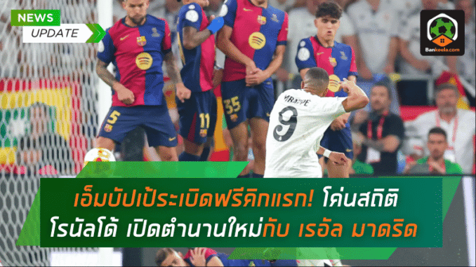 ยิ่งใหญ่เกินห้ามใจ! คิลิยัน เอ็มบัปเป้ กองหน้าความหวังใหม่ของ เรอัล มาดริด ประกาศศักดาเต็มตัว หลังซัดฟรีคิกสุดสวยเป็นครั้งแรกในชีวิตค้าแข้ง พร้อมจารึกชื่อเหนืออดีตตำนานอย่าง คริสเตียโน่ โรนัลโด้ ด้วยการทำสถิติยิงประตูในฤดูกาลแรกกับ “ราชันชุดขาว” ได้มากกว่า ท่ามกลางศึกเดือดที่ เบร์นาเบว ในเกมโกปา เดล เรย์ นัดชิงชนะเลิศกับบาร์เซโลน่า