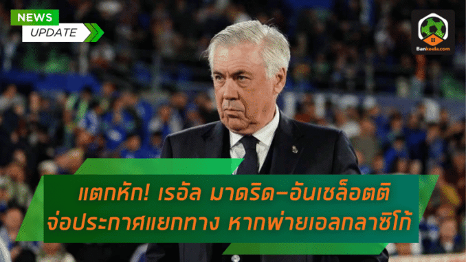 สถานการณ์ระหว่าง เรอัล มาดริด กับ คาร์โล อันเชล็อตติ กำลังร้อนระอุถึงขีดสุด เมื่อสื่อระดับโลกอย่าง The Athletic รายงานว่า ทั้งสองฝ่ายได้บรรลุข้อตกลงในการ แยกทาง กันเรียบร้อยแล้ว และมีแนวโน้มสูงว่าอาจมีการประกาศอย่างเป็นทางการในเร็ววัน โดยเฉพาะหากราชันชุดขาวพลาดท่าพ่ายในศึก เอล กลาซิโก้ ที่กำลังจะมาถึง