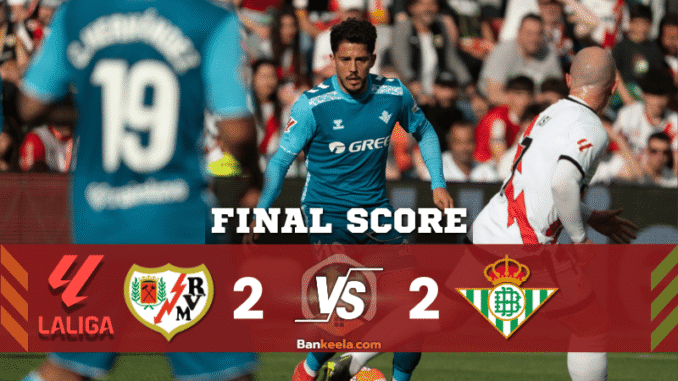 ศึกเดือดกลางกรุงมาดริดจบลงด้วยผลเสมอสุดมันส์! ราโย่ บาเยกาโน่ เปิดบ้านรับมือ เรอัล เบติส ในเกมที่แฟนบอลตามเช็ก ผลบอลสด กันแทบทุกวินาที ก่อนจบลงด้วยสกอร์ 2-2 ชนิดที่ทั้งสองฝ่ายยิงใส่กันไฟแล่บ แถมมีจุดโทษ พลาดเสียว ใบเหลืองครบเครื่อง ลุ้นกันจนวินาทีสุดท้าย!