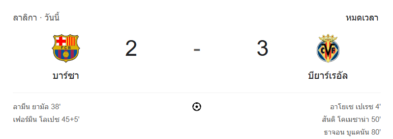 - จบเกม: บียาร์เรอัลบุกเชือดบาร์ซ่าถึงถิ่น 3-2!