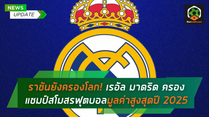 ยังคงเป็นเจ้าแห่งมูลค่าทางเศรษฐกิจของวงการลูกหนังโลก สำหรับ เรอัล มาดริด ยักษ์ใหญ่จากลาลีกา สเปน ที่กลับมาผงาดครองอันดับ 1 สโมสรฟุตบอลที่มีมูลค่าสูงสุดของโลกประจำปี 2025 ด้วยตัวเลขที่น่าตะลึงถึง 6.75 พันล้านดอลลาร์สหรัฐฯ หรือราว 216,000 ล้านบาท จากการจัดอันดับโดย ฟอร์บส์ (Forbes) นิตยสารการเงินชื่อดังระดับโลกที่ขึ้นชื่อเรื่องการวิเคราะห์สินทรัพย์และมูลค่าทางธุรกิจอย่างแม่นยำ