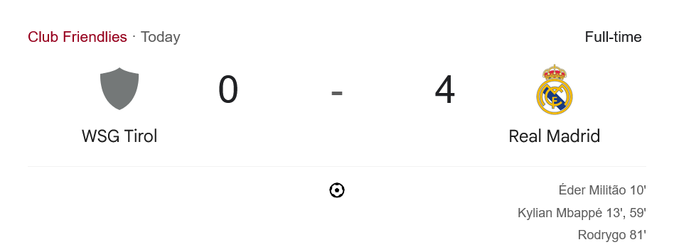 แม้เป็นเพียงเกมอุ่นเครื่อง แต่ชัยชนะถล่มทลายนี้ทำให้เรอัล มาดริดเพิ่มความมั่นใจก่อนเปิดศึกลา ลีกา ที่กำลังจะมาถึง ส่วน WSG Tirol ต้องเร่งปรับเกมรับก่อนกลับไปสู้ในลีกออสเตรีย