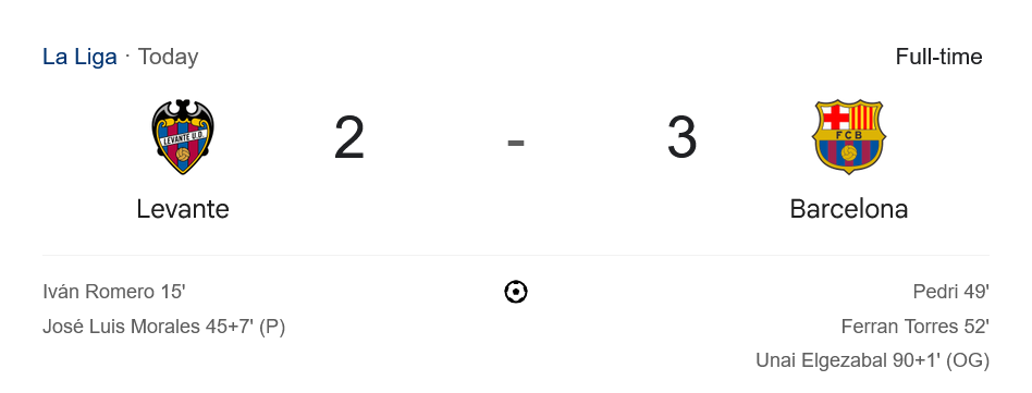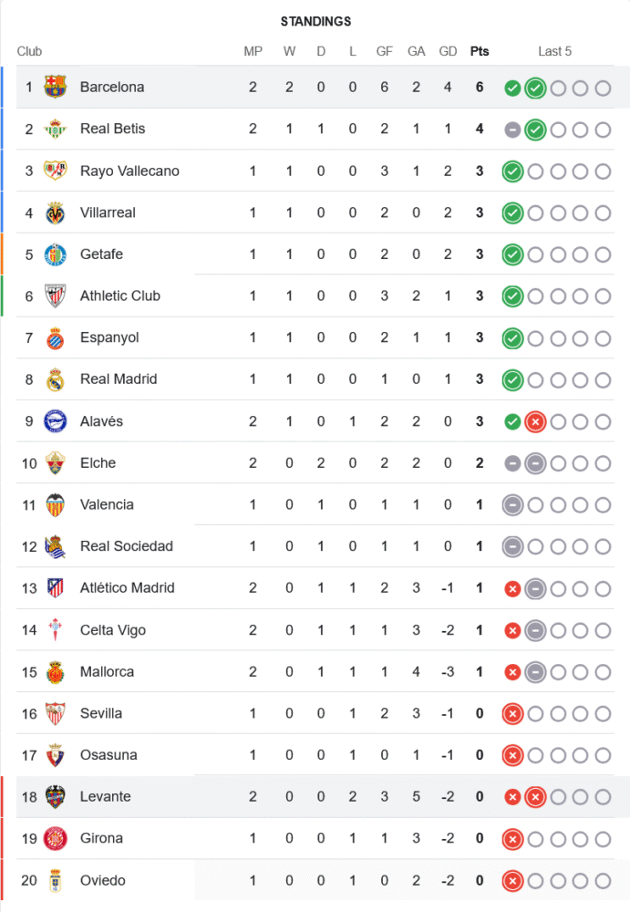 ชัยชนะนัดนี้ทำให้บาร์เซโลน่าเก็บ 6 แต้มเต็มจาก 2 เกม รั้งจ่าฝูงอย่างแข็งแกร่ง ส่วนเลบานเต้แพ้สองนัดติด จมอยู่ในโซนตกชั้นอันดับ 18 ถือเป็นสัญญาณอันตรายที่ทีมต้องรีบแก้ไข