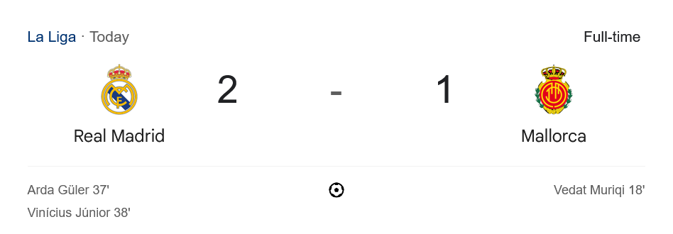 มายอร์ก้าขยับไล่เพรสและสวนกลับบ่อยขึ้น มีช่วงกดดันแนวรับมาดริดจนต้องระวังหลัง แต่จังหวะสุดท้ายยังไม่คม โอกาสลุ้นนาที 57 โดน VAR ริบคืน เจ้าถิ่นสลับหมากเติมความสดคุมเทมโป้และหาจังหวะปิดกล่อง ทว่าความเฉียบขาดยังไม่พอ สุดท้ายสกอร์นิ่งที่ 2-1 เสียงนกหวีดดัง ราชันชุดขาวเก็บสามแต้มแบบหืดเล็กๆ