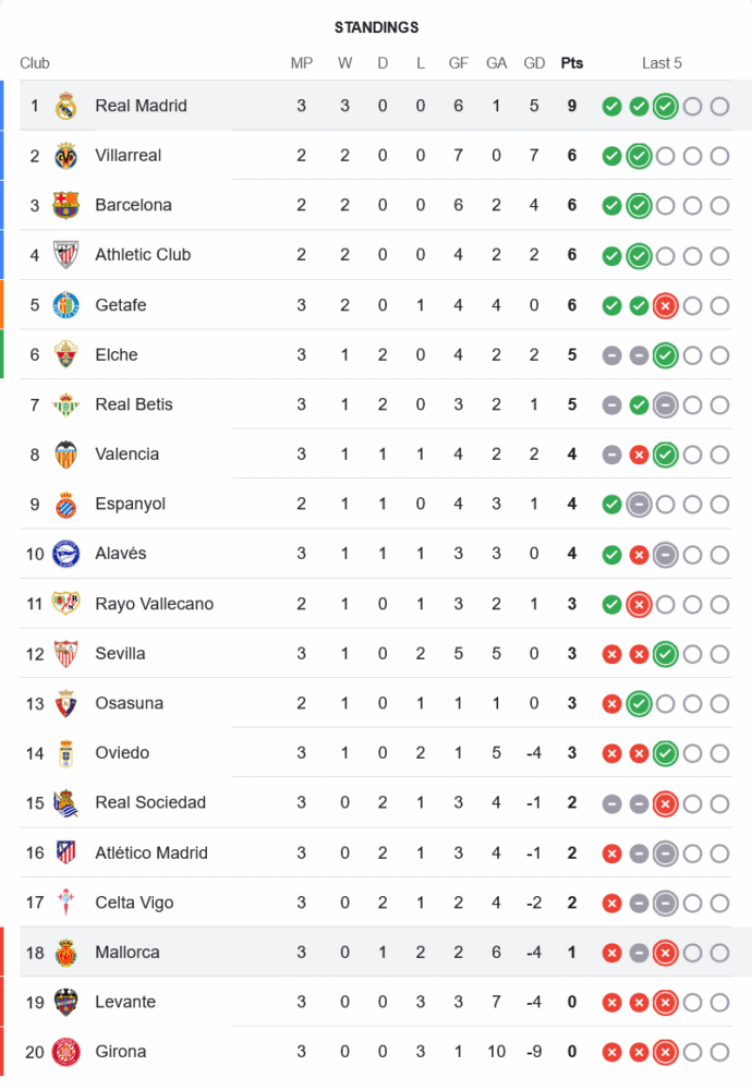 สามแต้มทำให้ เรอัล มาดริด ทะยานยึดจ่าฝูง มี 9 คะแนนเต็มจาก 3 นัดแรก กระสุนยังเต็มลำ ส่วนมายอร์ก้าแต้มคงที่ หล่นโซนล่างของตาราง ต้องเร่งเก็บคะแนนจากคู่แข่งร่วมโซนหนีตกชั้นให้ไว