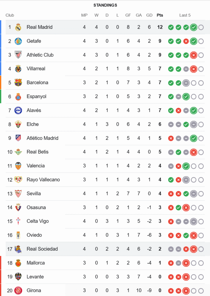 ชัยชนะนัดนี้ทำให้ เรอัล มาดริด เก็บ 12 คะแนนเต็มจาก 4 นัด รั้งจ่าฝูงแบบไร้พ่าย ขณะที่ เรอัล โซเซียดาด จมโซนท้ายตารางมีเพียง 2 คะแนนจาก 4 นัด อยู่อันดับ 17 ต้องเร่งหาทางกลับมาเก็บชัยหากไม่อยากเสี่ยงโซนตกชั้น