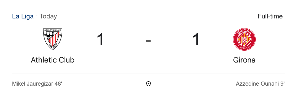 บ้านผลบอล สรุปหลังเกม ลาลีกาไฟแลบ! แอธเลติก บิลเบา ไล่เจ๊า คิโรน่า 1-1 ฮีโร่ฆัวเรกิซาร์กู้แต้ม สถานการณ์สองทีมสุดต่าง